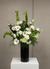 Large arrangement available in black glass vase