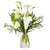 A delicate mix of white mini callas and lizzianthus with seasonal flowers designed in a petite vase. this arrangement is best suited for a registration desk, highboy table or bedside arrangement  Approx 9" Tall x 6" wide  Our gifts are delivered within The Venetian Resort...